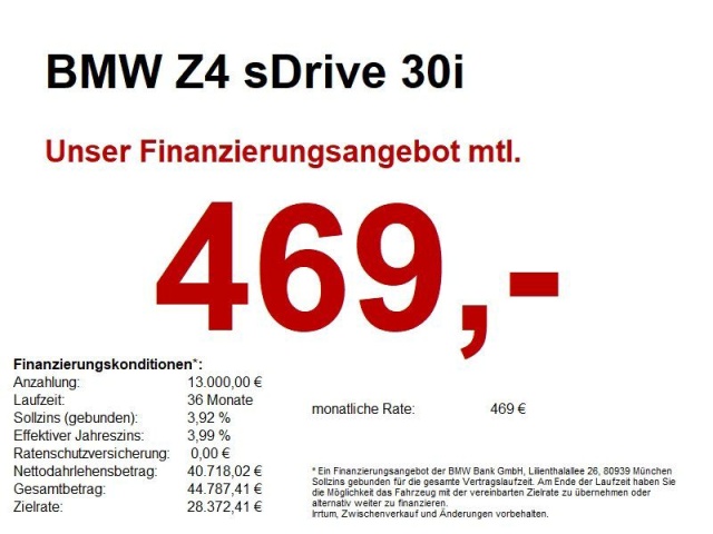 Voor zakelijke klanten bieden wij optioneel een financial lease oplossing en voor particuliere klanten een persoonlijke lening. Met onderstaande module kunt u uw maandbedrag berekenen voor het financieren van bovenstaande BMW Z4.