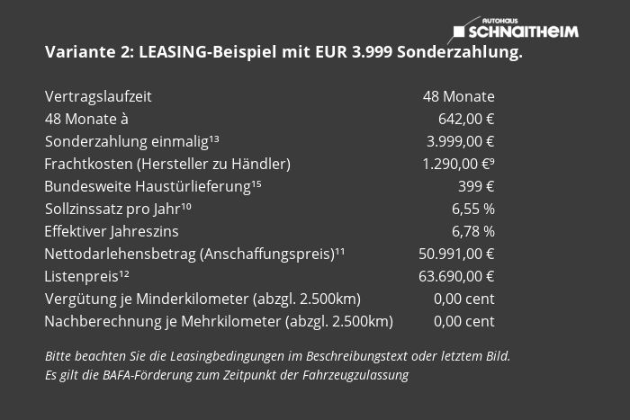 Financial Lease: Dit is een zakelijke vorm van leasen waarbij de auto eigendom van het bedrijf blijft. De BTW over de aanschaf en import van de auto kan worden teruggevorderd als u BTW plichtig bent en wordt daarom niet meegefinancierd. Onderstaande berekening is gebaseerd op de totaalprijs (excl. BTW) van de auto op Nederlands kenteken inclusief transport en aankoopafwikkeling en alle kosten voor de financiering.