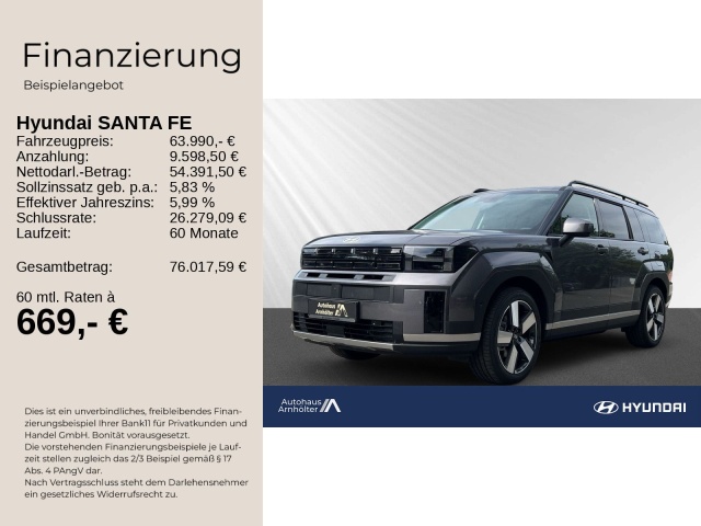 Voor zakelijke klanten bieden wij optioneel een financial lease oplossing en voor particuliere klanten een persoonlijke lening. Met onderstaande module kunt u uw maandbedrag berekenen voor het financieren van bovenstaande Hyundai Santa Fe.