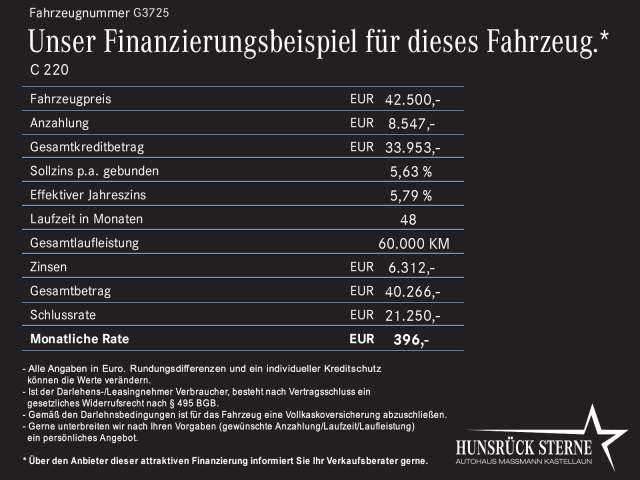Voor zakelijke klanten bieden wij optioneel een financial lease oplossing en voor particuliere klanten een persoonlijke lening. Met onderstaande module kunt u uw maandbedrag berekenen voor het financieren van bovenstaande Mercedes-Benz C 220.
