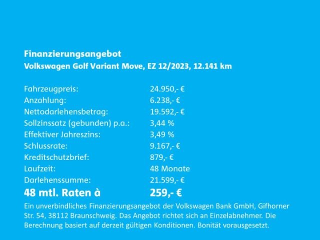 Voor zakelijke klanten bieden wij optioneel een financial lease oplossing en voor particuliere klanten een persoonlijke lening. Met onderstaande module kunt u uw maandbedrag berekenen voor het financieren van bovenstaande Volkswagen Golf Variant.