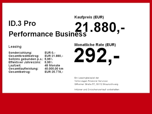 Voor zakelijke klanten bieden wij optioneel een financial lease oplossing en voor particuliere klanten een persoonlijke lening. Met onderstaande module kunt u uw maandbedrag berekenen voor het financieren van bovenstaande Volkswagen ID.3.