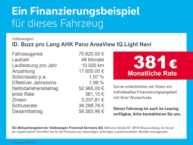 Voor zakelijke klanten bieden wij optioneel een financial lease oplossing en voor particuliere klanten een persoonlijke lening. Met onderstaande module kunt u uw maandbedrag berekenen voor het financieren van bovenstaande Volkswagen ID.Buzz.