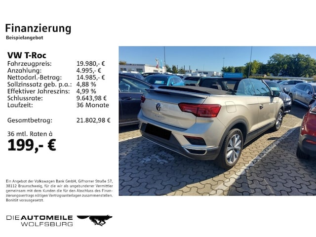 Voor zakelijke klanten bieden wij optioneel een financial lease oplossing en voor particuliere klanten een persoonlijke lening. Met onderstaande module kunt u uw maandbedrag berekenen voor het financieren van bovenstaande Volkswagen T-Roc.