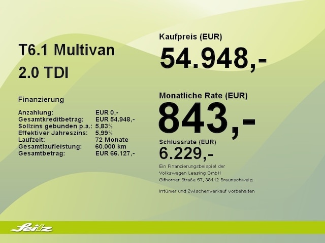 Voor zakelijke klanten bieden wij optioneel een financial lease oplossing en voor particuliere klanten een persoonlijke lening. Met onderstaande module kunt u uw maandbedrag berekenen voor het financieren van bovenstaande Volkswagen T6.1 Multivan.