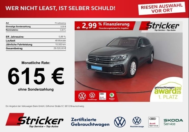 Voor zakelijke klanten bieden wij optioneel een financial lease oplossing en voor particuliere klanten een persoonlijke lening. Met onderstaande module kunt u uw maandbedrag berekenen voor het financieren van bovenstaande Volkswagen Touareg.