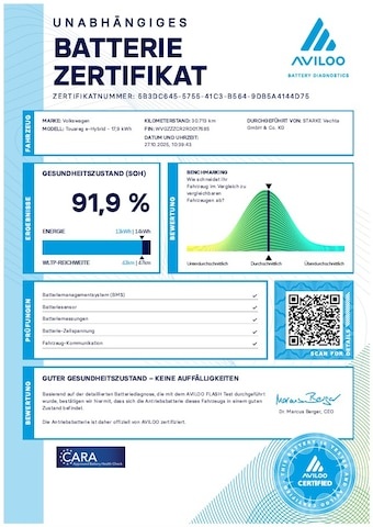 In de Duitse advertentie van deze Volkswagen Touareg staat een CO2-uitstoot vermeld van 0 gram per km. Op basis daarvan hebben wij geautomatiseerd een indicatief rest-BPM bedrag van € 0 berekend op basis van de afschrijvingstabel van de Belastingdienst. Een handmatige BPM berekening o.b.v. een waardebepaling leidt voor jonge auto's vaak tot een lager rest-BPM bedrag. Vraag hiertoe een offerte aan, vaak kunnen we daar een besparing voor u realiseren. Om hiervoor een fiscaal akkoord te krijgen zal de BPM aangifte worden aangevuld met een waardebepaling taxatierapport. Wij rekenen een fee voor onze bemiddeling hierin. Uiteraard alleen wanneer dit rendabel is.