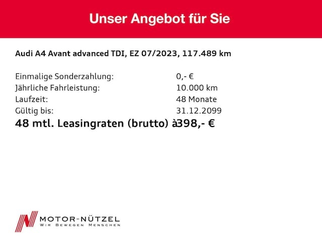 Voor zakelijke klanten bieden wij optioneel een financial lease oplossing en voor particuliere klanten een persoonlijke lening. Met onderstaande module kunt u uw maandbedrag berekenen voor het financieren van bovenstaande Audi A4.