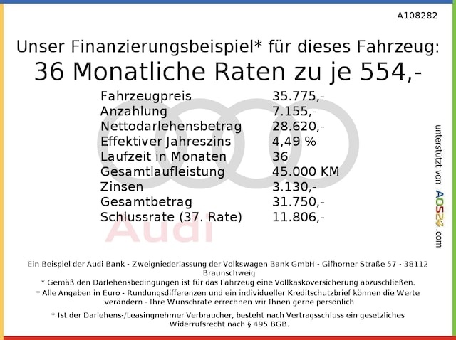 Voor zakelijke klanten bieden wij optioneel een financial lease oplossing en voor particuliere klanten een persoonlijke lening. Met onderstaande module kunt u uw maandbedrag berekenen voor het financieren van bovenstaande Audi A4.