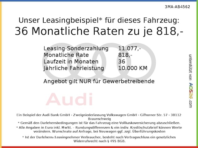 Voor zakelijke klanten bieden wij optioneel een financial lease oplossing en voor particuliere klanten een persoonlijke lening. Met onderstaande module kunt u uw maandbedrag berekenen voor het financieren van bovenstaande Audi A8.