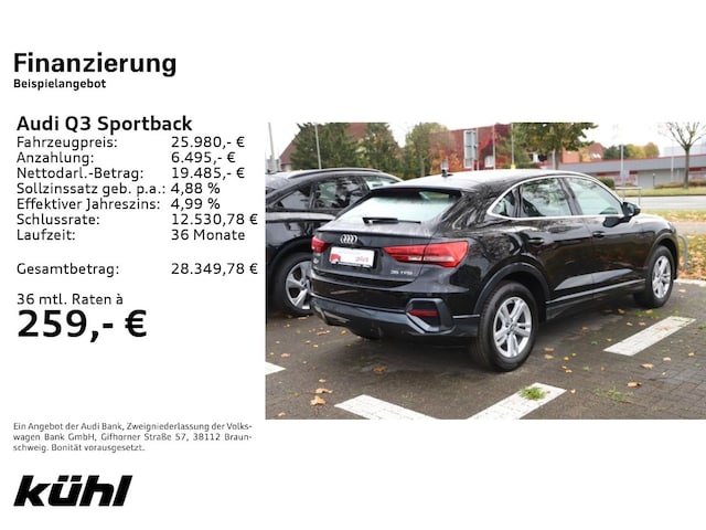 Voor zakelijke klanten bieden wij optioneel een financial lease oplossing en voor particuliere klanten een persoonlijke lening. Met onderstaande module kunt u uw maandbedrag berekenen voor het financieren van bovenstaande Audi Q3.