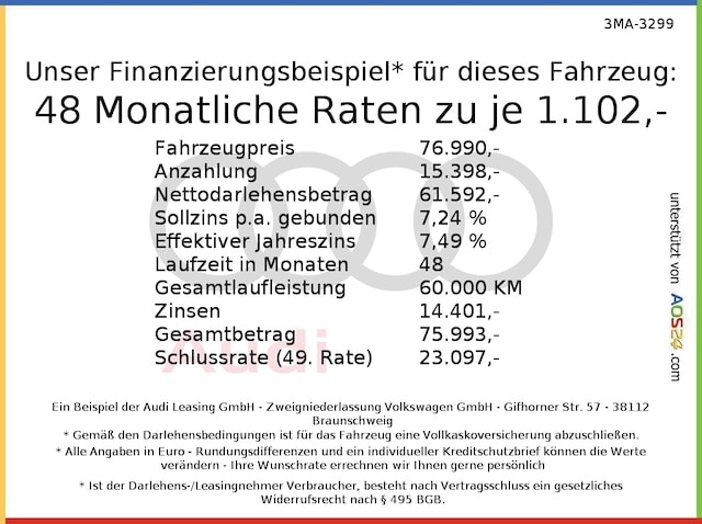 Voor zakelijke klanten bieden wij optioneel een financial lease oplossing en voor particuliere klanten een persoonlijke lening. Met onderstaande module kunt u uw maandbedrag berekenen voor het financieren van bovenstaande Audi SQ8.