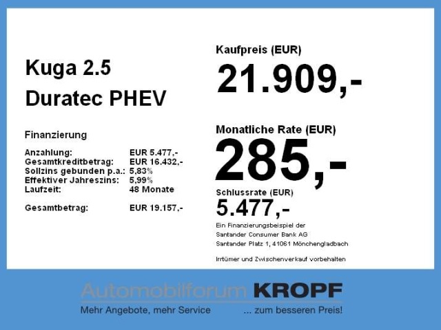 In de Duitse advertentie van deze Ford Kuga staat een CO2-uitstoot vermeld van 33 gram per km. Op basis daarvan hebben wij geautomatiseerd een indicatief rest-BPM bedrag van € 341 berekend op basis van de afschrijvingstabel van de Belastingdienst. Een handmatige BPM berekening o.b.v. een waardebepaling leidt voor jonge auto's vaak tot een lager rest-BPM bedrag. Vraag hiertoe een offerte aan, vaak kunnen we daar een besparing voor u realiseren. Om hiervoor een fiscaal akkoord te krijgen zal de BPM aangifte worden aangevuld met een waardebepaling taxatierapport. Wij rekenen een fee voor onze bemiddeling hierin. Uiteraard alleen wanneer dit rendabel is.