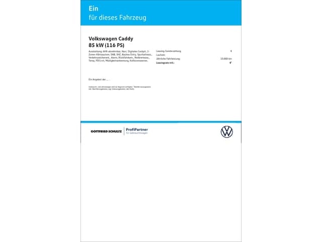 Voor zakelijke klanten bieden wij optioneel een financial lease oplossing en voor particuliere klanten een persoonlijke lening. Met onderstaande module kunt u uw maandbedrag berekenen voor het financieren van bovenstaande Volkswagen Caddy.