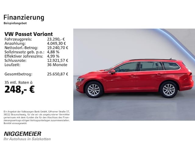 Voor zakelijke klanten bieden wij optioneel een financial lease oplossing en voor particuliere klanten een persoonlijke lening. Met onderstaande module kunt u uw maandbedrag berekenen voor het financieren van bovenstaande Volkswagen Passat Variant.