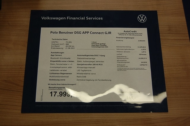 Deze Volkswagen Polo staat te koop in Duitsland bij een officiële Volkswagen dealer. Wij zullen het aankoopproces volledig voor u faciliteren wanneer u gebruik maakt van ons Premium of Premium + pakket. U hoeft hier dan niets zelf voor te doen, behalve uw handtekening zetten en te betalen. In de meeste gevallen bent u op papier de koper van auto. Dit i.v.m. zaken als garantie, juridische positie en lagere BTW in Duitsland (BTW, alleen relevant wanneer u de auto particulier aanschaft).